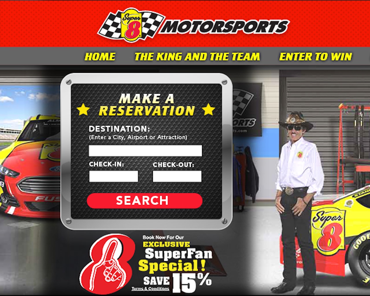 Although engaged in a long-term relationship with Richard Petty Motorsports, Super 8, part of the Wyndham Hotel Group, believed that the sponsorship needed to be reinvigorated to reap the full benefits of connecting with loyal NASCAR fans. The brand’s racing website had become anemic as traffic dwindled to fewer than 100 weekly visits.
